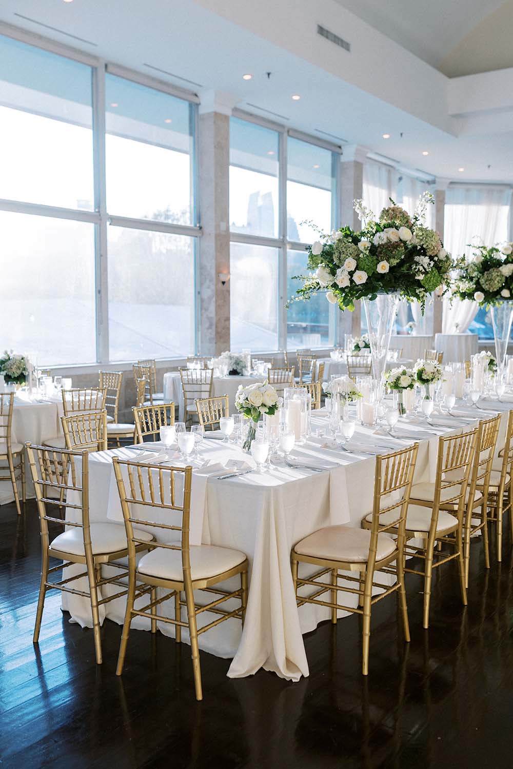 Rental of this sought-after Atlanta venue includes luxurious ivory table linens, elegant gold Chiavari chairs with ivory cushions, ambient votive candles, customizable up-lighting, and complimentary self-parking for event guests. Ideal for intimate gatherings or grand celebrations, the Piedmont Room comfortably accommodates parties from 50 to over 200 guests.